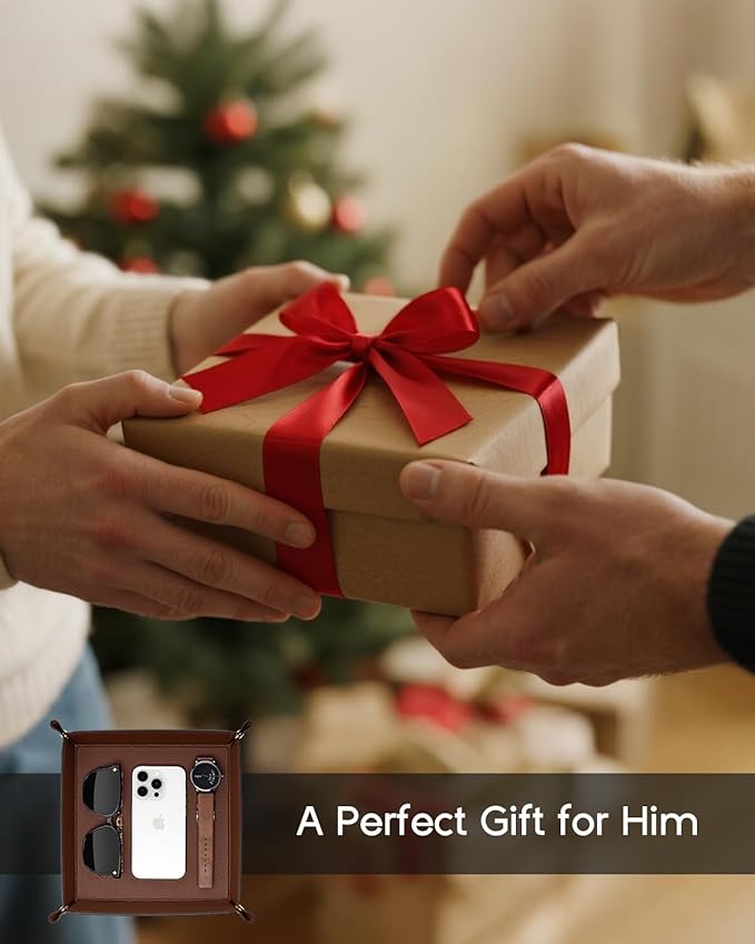 - Practical and pretty Valet Tray: The tray is made of high quality faux leather is both practical and well made. It can be called not only a storage place for coins, keys, but also a pretty decoration.
