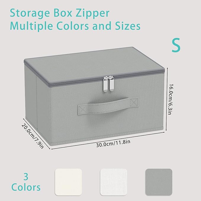 Storage Bins with Zipper, Cube Organizer Basket with Lid, Collapsible Stackable Closet Boxes, for Home and Bedroom, 1 Pack, Grey, 11.8 x 7.9 x 6.3 In, XSNY16GS-1