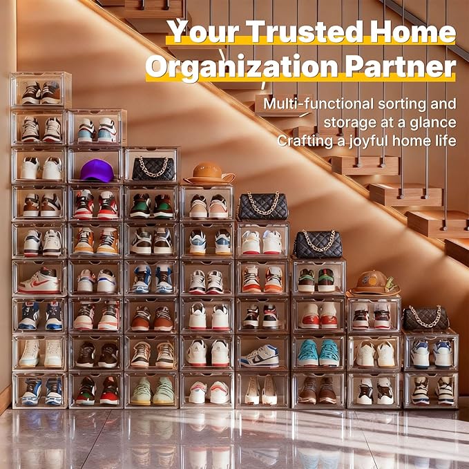 - 1.Fits US Size 13+ Fits Sneakers, Boots, Heels & Everyday Shoes Spacious interior (13.5" x 10.55" x 7.5") accommodates bulky sneakers and high-tops without squashing. each box provides generous interior space that fits most men’s and women’s shoes—from sneakers and high-tops to heels, flats, sandals, and ankle boots. Perfect for families and shoe lovers who need clean, visible storage.