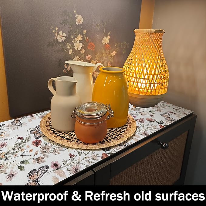 Floral Shelf Liners Non Adhesive 12IN x 20FT and Strong Non-Slip Shelf and Drawer Liners for Kitchen Cabinet Wire Fridge, Waterproof Shelf Drawer Liner,Easy to Clean,Butterfly