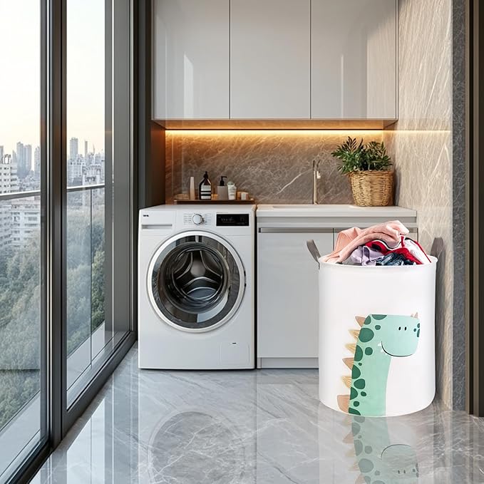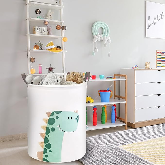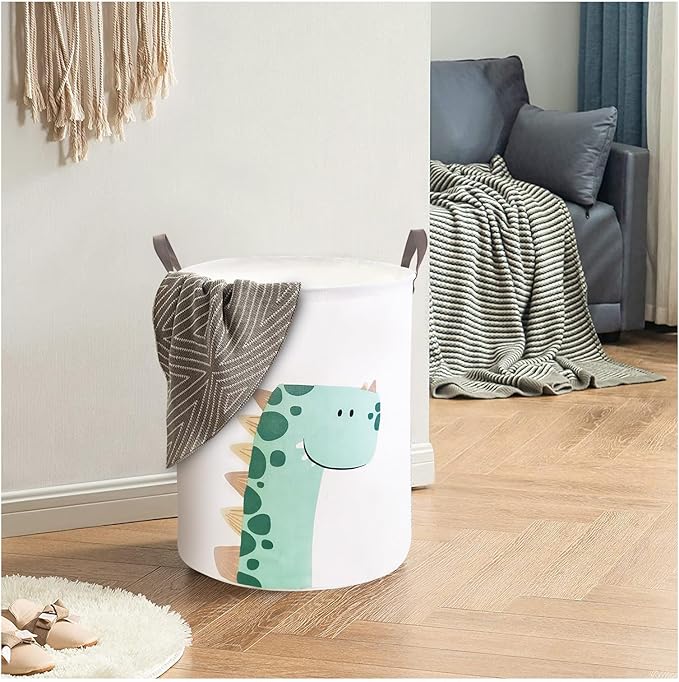 Mziart Kids Laundry Basket for Girls Boys, Cute Baby Laundry Hamper Waterproof Collapsible Large Storage Basket Nursery Toy Bin Home Decor Gift Baskets for Bathroom Bedroom 19.7 Inch (Green Dinosaur)