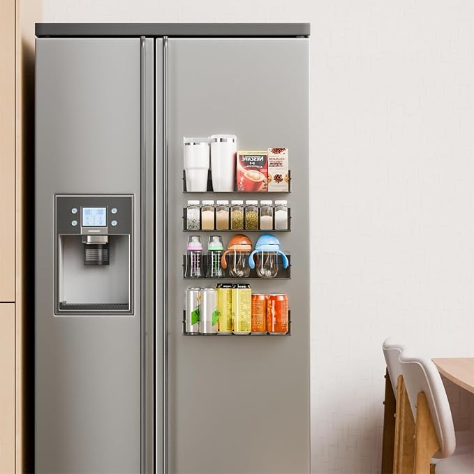 - 【Widely Used】the adhesive spice rack can be placed in kitchen cabinet doors,rv,Cupboard, and pantry to organize spice bottles,Condiment,jars,sauces,seasoning, cans, beverages,medicine,oil jugs, etc,It can even be used for storing nail polish,cosmetics and toiletries on bathroom walls