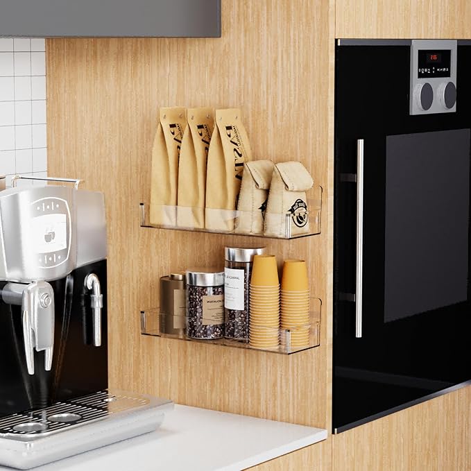 Yieach 4 Pack Clear Spice Rack Wall Mount with Adhesive,11.5″L x 3.6″W,Stick on Seasoning Jar Spice Organization for Cabinet Door or Pantry Door,Adhesive Wall Spice Rack for RV,Kitchen,Inside Cabinets