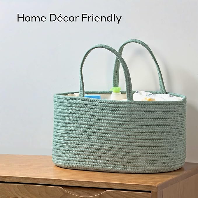 Diaper Caddy Organizer, Empty Gift Basket for Newborn Essentials, Baby Storage Basket, Stylish Gift Bag for Baby Shower, Boys and Girls – Large, Sage Green