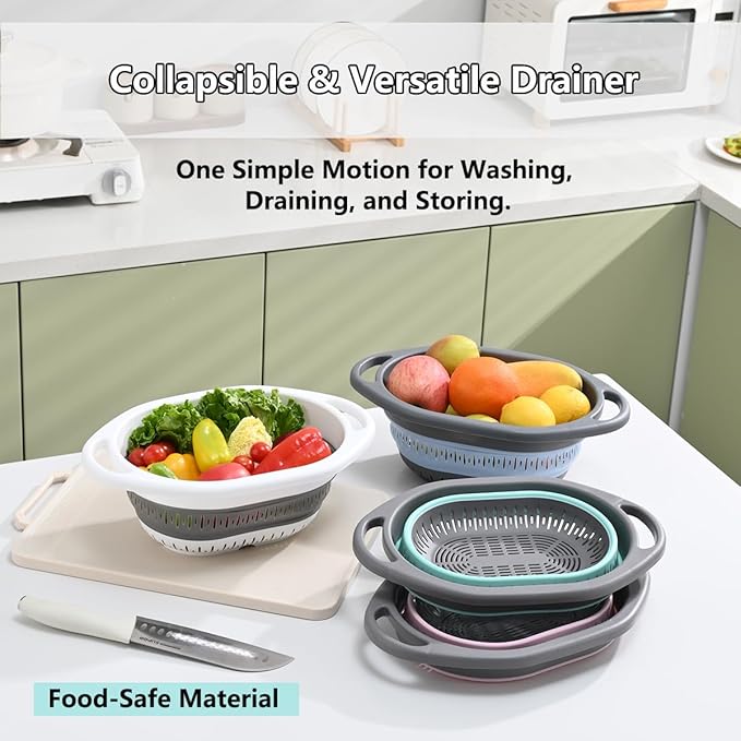 - Multi-Functional Kitchen Workhorse: Engineered for versatile use, this collapsible colander serves multiple purposes in your kitchen. Perfect for washing fruits and vegetables in the sink, draining pasta and noodles, or straining canned goods, it streamlines your food preparation process while reducing kitchen clutter.