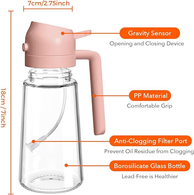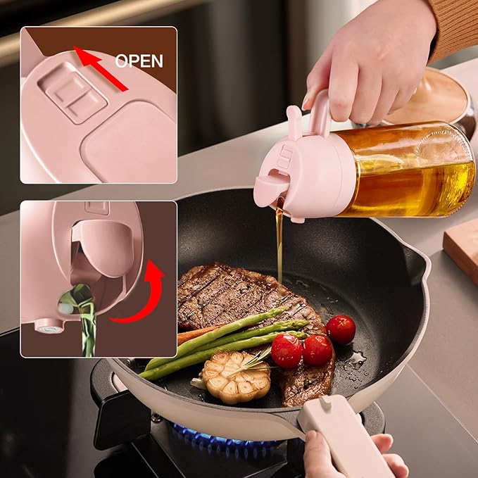 - Dual-Function Design & Multi-Purpose: Oil spray bottle for cooking offers the convenience of both spraying and pouring oil, suitable for a wide range of food preparation processes such as salad dressing, griddle, roasting, grilling, make your kitchen efficient and organized