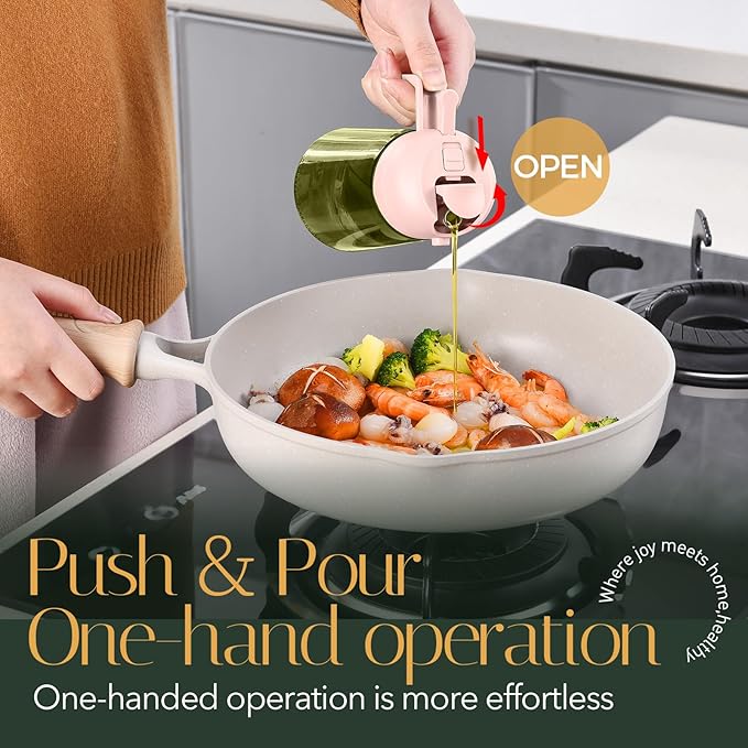 - 【Precise Oil Control】: 2 in 1 oil dispenser and oil sprayer can help to control the amount of oil while pouring or spraying. Each spray dispenses approximately 0.2 grams of oil, which is easily to control and measure your daily oil intake