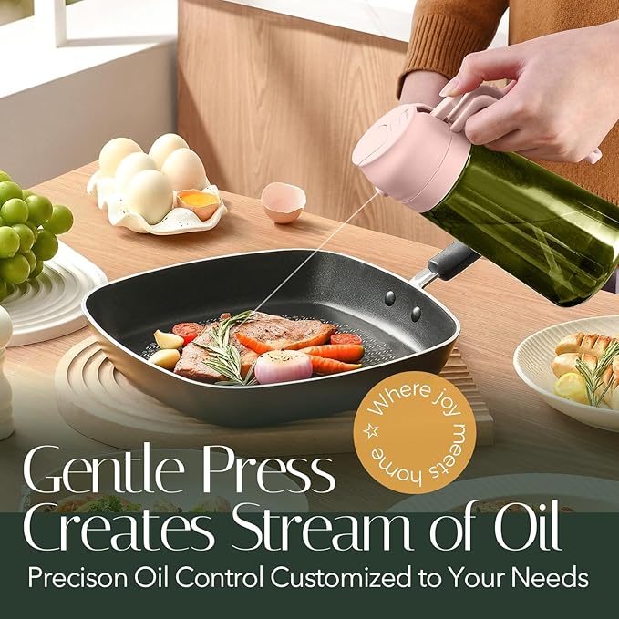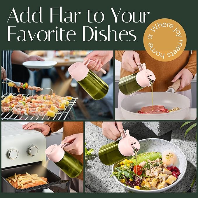 - 【Dual-Function Design & Multi-Purpose】: Oil mister spray bottle for cooking offers the convenience of both spraying and pouring oil, suitable for a wide range of food preparation processes such as salad dressing, griddle, roasting, grilling