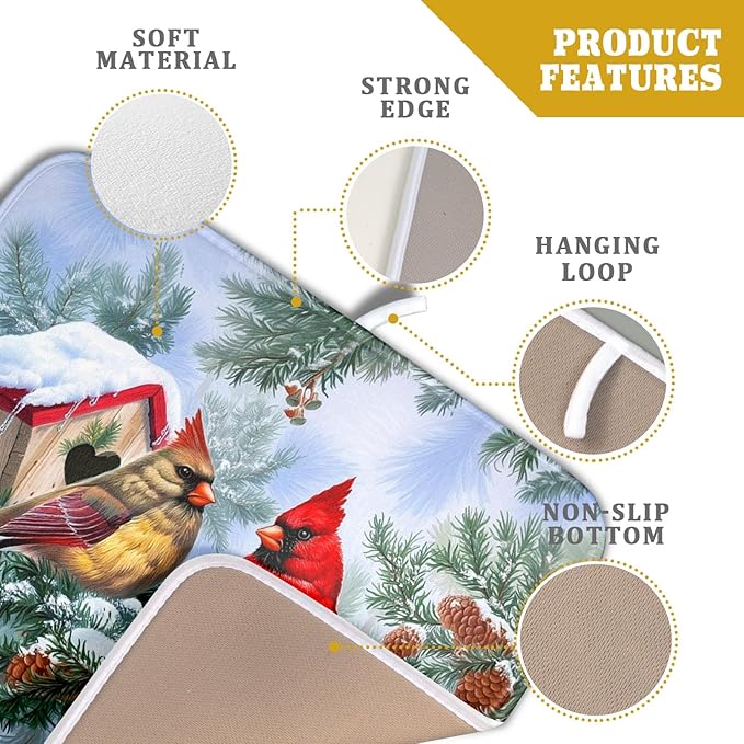 - 1【Good Material】:Our winter red cardinal bird drying mat is made of high absorbent microfiber and the middle is made of composite spongedurable, reversible do not fade and comfortable. At the same time, it can protect your kitchen counter from scratching by the tableware.