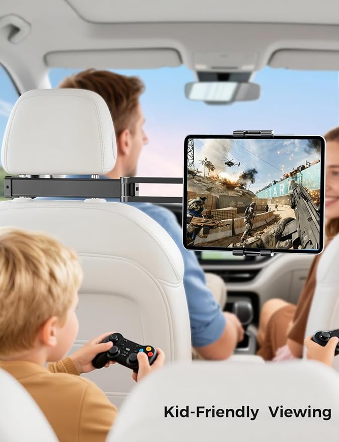 - 【Perfect for Kids & Travel】 This iPad holder for car backseat is a game-changer for backseat passengers. It frees up your hands for movies, games, reading, or music on long drives. Kids can watch cartoons or play games, keeping them happy while you focus on driving safely.