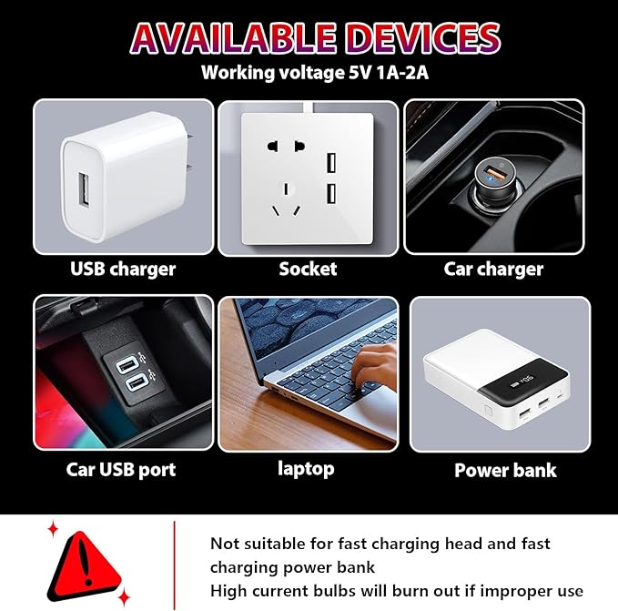 - 【Wide Application & Portable Design】Easy to carry, instantly creates a cozy or festive atmosphere wherever you go. Compact and portable USB lamp for car decorations interior, home décor, camping, hiking, and parties. Note: Use standard 5V 1A/2A adapter only—fast chargers may damage the usb light.
