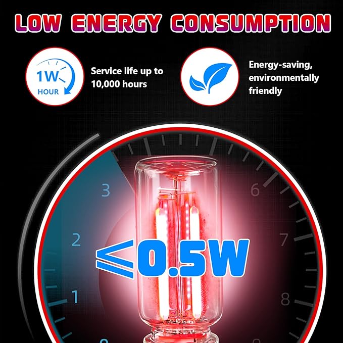- 【Retro Design & Durable Materials】Car LED lights is crafted with medical-grade low borosilicate glass and ceramic LED double filaments. More durable, heat-resistant, with 10,000h lifespan and ultra-low 0.5W power consumption, ensuring safe and reliable use of your LED car lights interior.