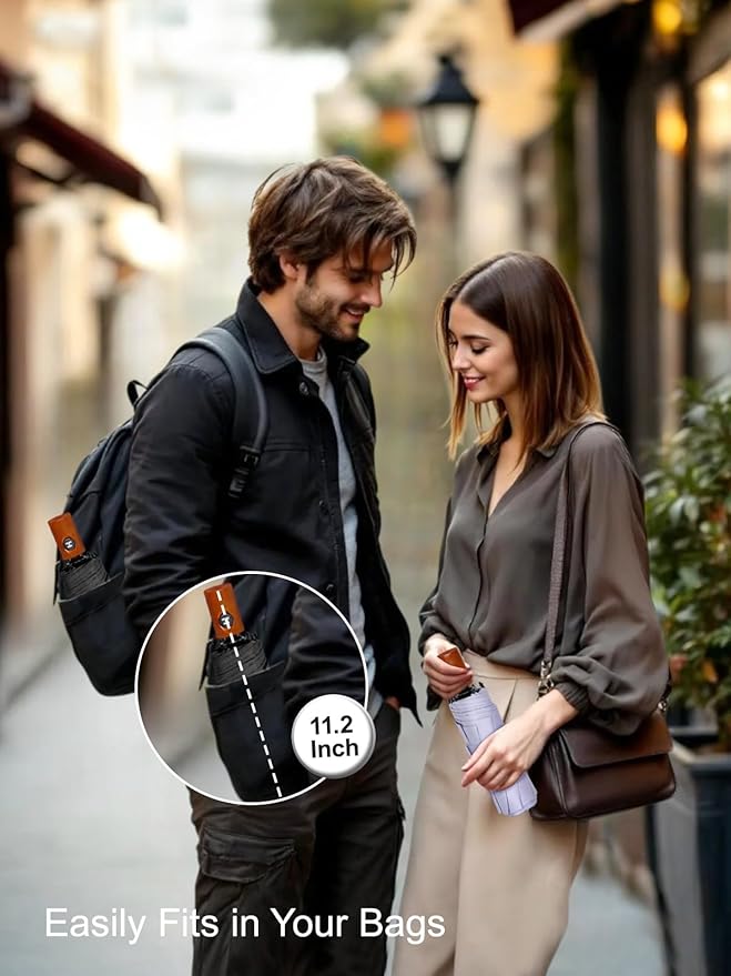 - Ideal for On-the-Go With a 21-inch canopy and a folded length of just 11.2 inches, this umbrella fits easily into bags, backpacks, or car compartments, combining portability with full coverage.