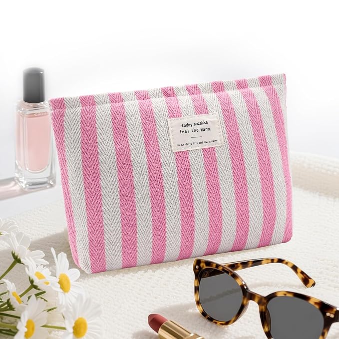 - Fashion Design: This striped makeup pouch is very cute. The unique striped design makes this toiletry bag for purse full of fashion sense. The smooth zipper closure of the cosmetic pouch can accommodate daily skin care cosmetics. Whether striped makeup pouch is a pocket bag or a single take shopping trip, striped toiletry pouch is versatile and practical