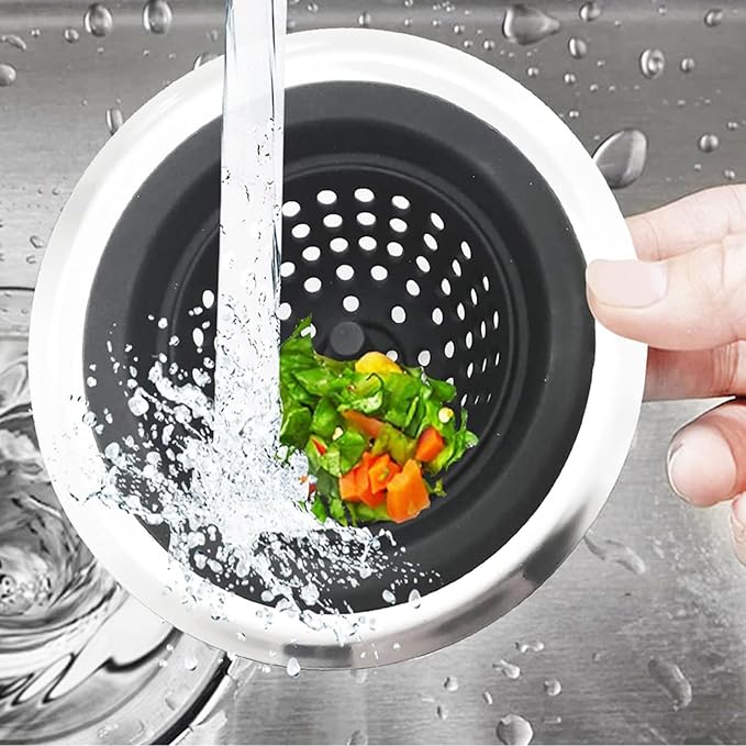 - Durable Material: Stainless rim and silicone basket. Silicon design is flexible and reliable, fits most standard kitchen sinks as well as bathroom, laundry, and workshop utility sinks