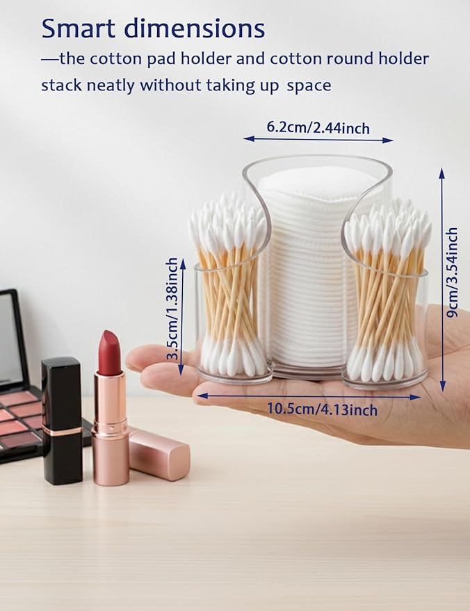 - Open Design for Quick Access: This qTips and cotton pad holder features an open-top design, making it easy to grab cotton pads, swabs, or floss picks instantly without removing a lid.