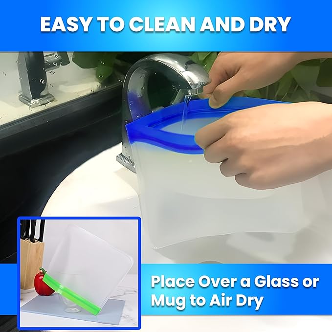 - Safe, BPA-Free & Food-Grade Material: Crafted from eco-friendly, food-grade Silicone, these reusable bags are BPA-free, PVC-free, and completely free from harmful chemicals, making them a safe and sustainable alternative to single-use plastic bags. Gentle on both your health and the environment, they're perfect for packing kids’ lunches, and storing fruits, vegetables, meats, snacks, and more. Durable, non-toxic, and odorless — designed for peace of mind with every use.