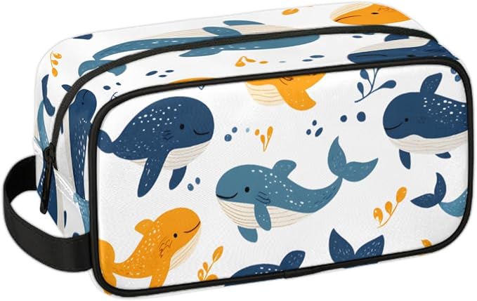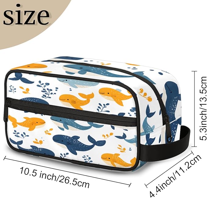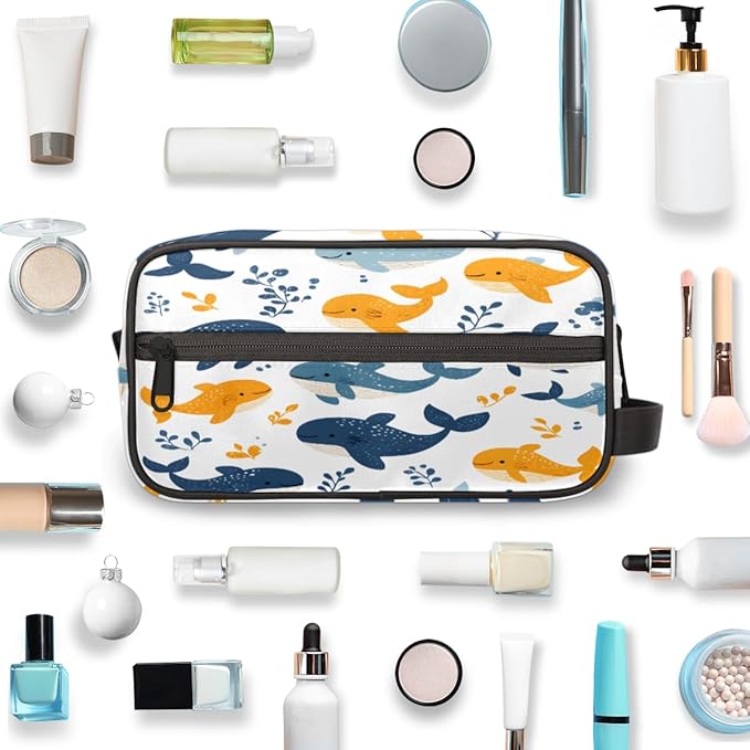 Whales And Seaweed Travel Toiletry Bag for Women, Waterproof Cosmetic Makeup Bag with PU Handle & Zipper, 2 Compartment Portable Shaving Bag for Bathroom, Gym, Business Trips