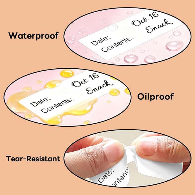 - 【Durable & Waterproof Design】Made of high-quality material that’s waterproof, oil-resistant, and tear-resistant. These labels stay intact through freezing, thawing, and washing without fading.