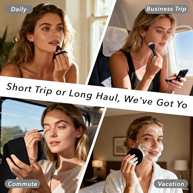 - Compact and Portable: Designed for travel convenience, this mini makeup kit comes with two lightweight and durable makeup pouches that neatly organize all tools. The compact size fits easily into any handbag, suitcase, or backpack, making it ideal for vacations, business trips, gym sessions, and daily use.