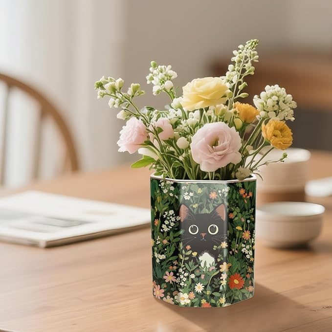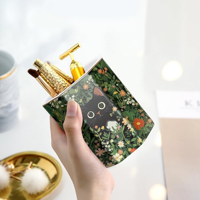 WAVEYU Pen Holder, Pencil Cup for Desk, Cute Desk Organizer, Durable Ceramic Decorative Makeup Brush Desktop Accessories, Stylish Stationery for Office, Home, Cute Cat Pattern