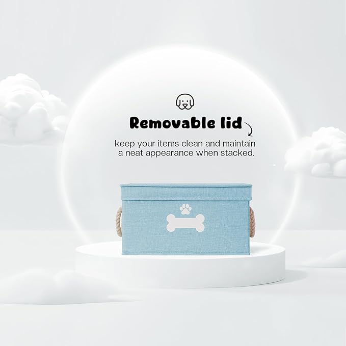 Dog Toy Basket with Lid, Dog Basket for Toys, Dogs Toy Box with Cotton Rope Handles, Collapsible Storage Bins for Pet Toys, Dogs Storage Organizer, Blue