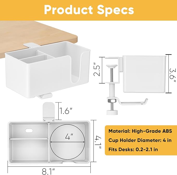 - 【DECLUTTERED DESK】Mounts your drinks off the surface to prevent spills and protect your devices while keeping your workspace neat and focused