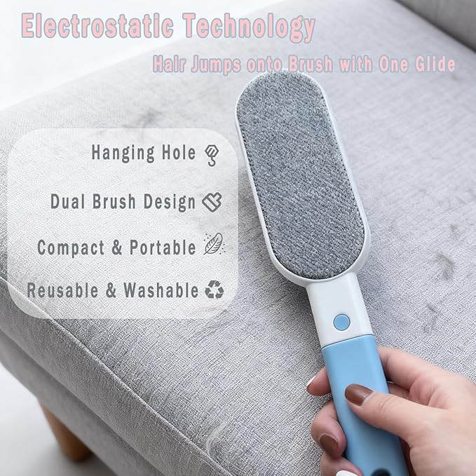 - 【Electrostatic & Effortless Cleaning】See the Magic Happen: The premium polyester brush head generates just the right amount of static to make pet hair, lint, and dust jump right onto the brush with a simple glide. It effortlessly cleans large areas like carpets, rugs, and pet beds in seconds, saving you time and energy. No more sticky rolls or wasteful refills.