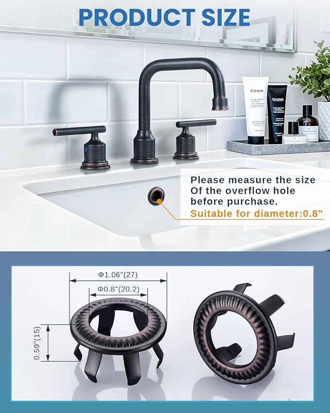 - Precise Size Compatibility: Specifically designed to fit standard sink overflow holes with a diameter of 0.8 inches. Please confirm your sink's overflow hole size before purchasing to ensure optimal compatibility and ease of installation
