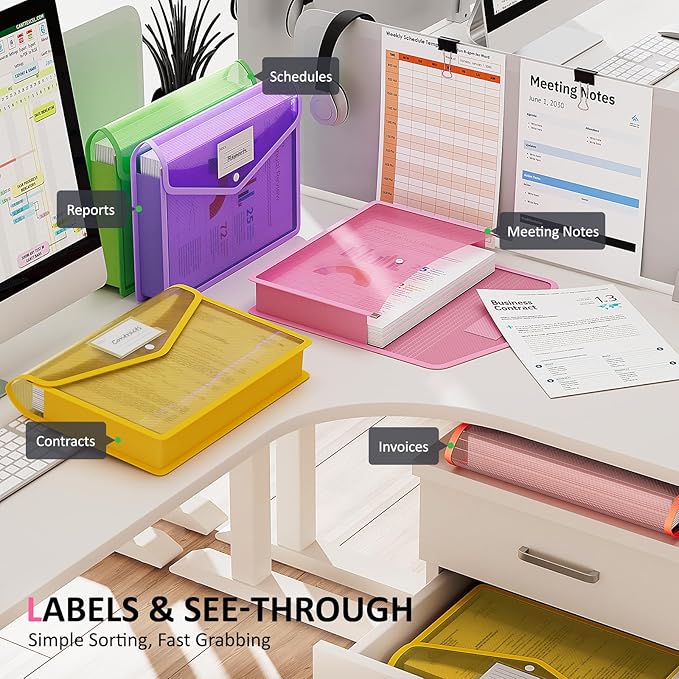 - EXPANDABLE LARGE CAPACITY - No dividers, the plastic envelopes can expand up to 2'', roomy enough for heavy duty. Flexibly organize different amounts of documents
