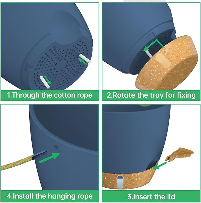 - 【Smart Self-Watering System】 Our hanging planters come with a removable reservoir tray that stores 7-10 day water supplyfor your beloved plants. Absorbent cotton ropes automatically deliver moisture to soil when needed - ideal for vacations or busy lifestyles. Spend less time watering hanging baskets for indoor plants!