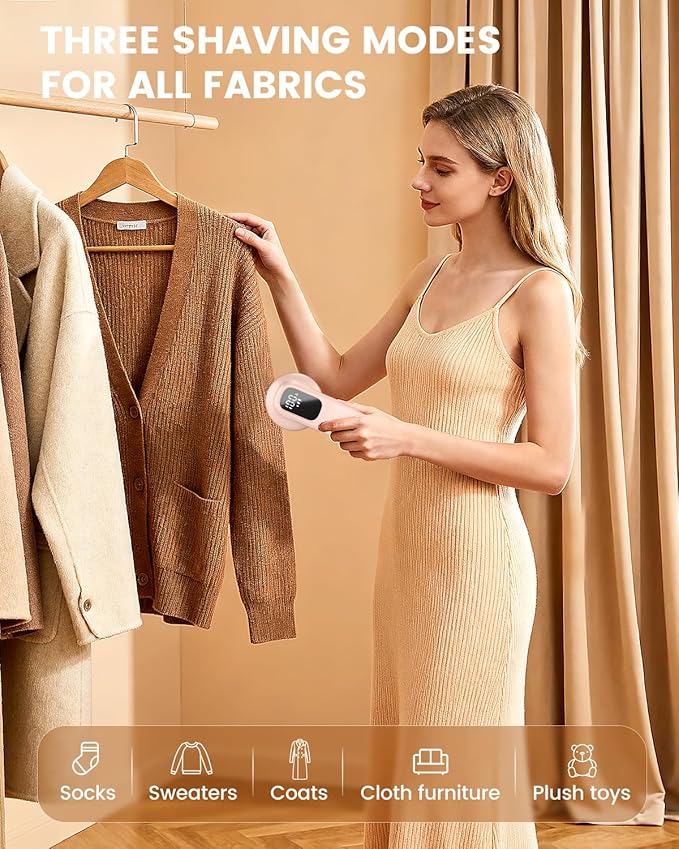 - 【3 Smart Modes for Every Fabric - From Delicate Socks to Thick Coats】Maximize versatility with 3 tailored modes: Gentle for socks and delicate fabrics, standard for everyday sweaters and knits, and power for deep cleaning coats, furniture, and plush toys. This is the all-in-one pill remover to keep everything in your home looking new, from your favorite sweater to the family sofa.