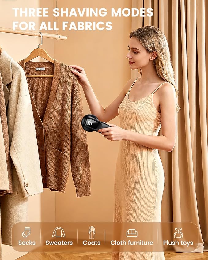 - 【3 Smart Modes for Every Fabric - From Delicate Socks to Thick Coats】Maximize versatility with 3 tailored modes: Gentle for socks and delicate fabrics, standard for everyday sweaters and knits, and power for deep cleaning coats, furniture, and plush toys. This is the all-in-one pill remover to keep everything in your home looking new, from your favorite sweater to the family sofa.