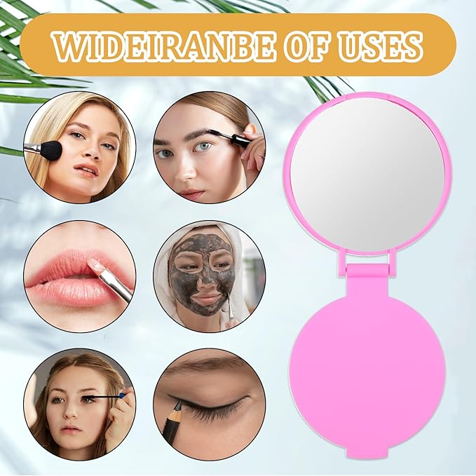 - Flip Design: These small compact mirrors are functional and practical, with a flip folding design. You only need to open the mirror cover, and the folding pocket mirror can stand firmly on the table, like a stand, freeing your hands, easy and convenient to use, and can also avoid the influence of dust and glass wear