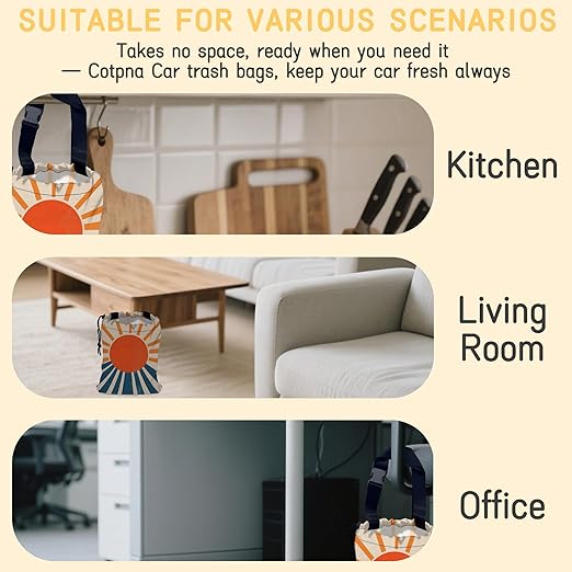 - Multi-Purpose: These stylish car trash bags are perfect for cars, trucks, SUVs, or RVs. They can also be hung anywhere—in strollers, kitchens, bedrooms, storage rooms, and more—and are more than just car accessories