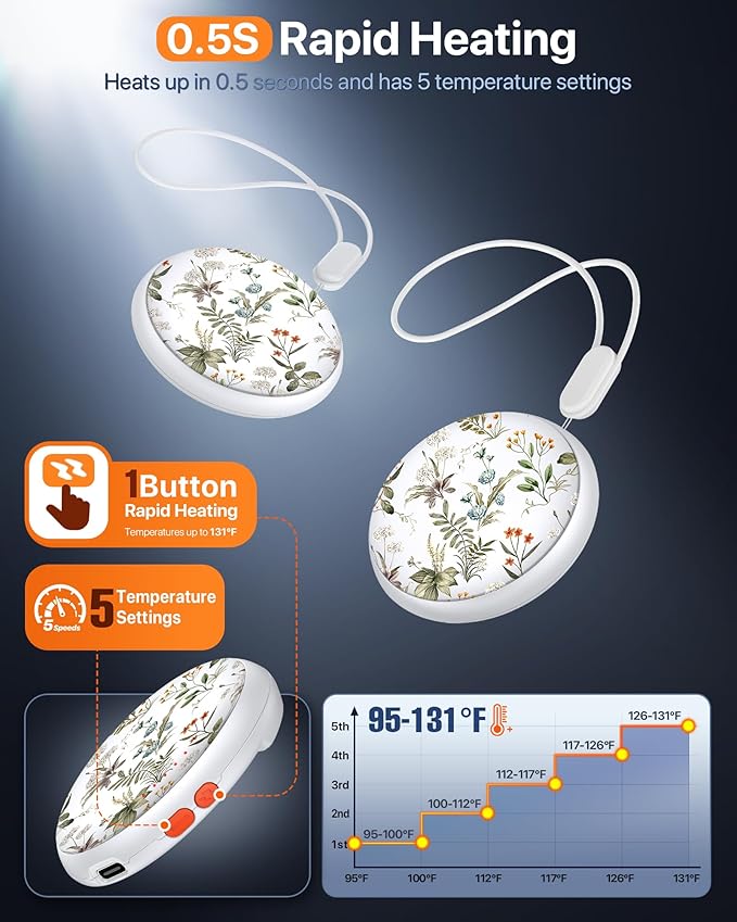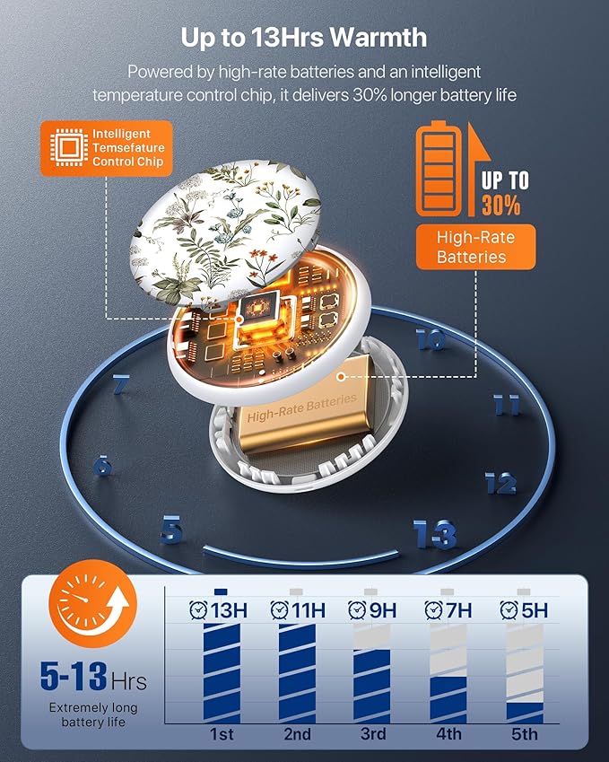 - 【Rechargeable & Long-Lasting Power】Enjoy up to 5–13 hours of continuous warmth on a single charge. Recharge quickly with the included USB-C cable and reuse it again and again.