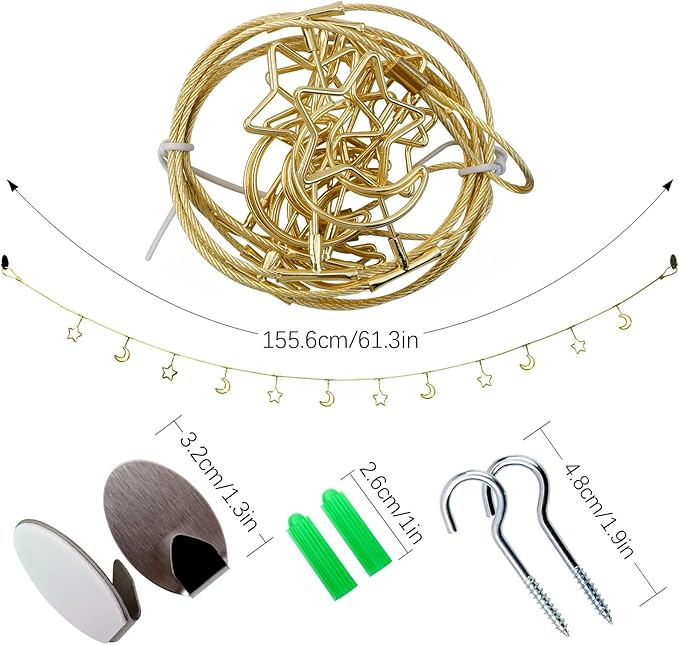 - 【Size】Total hanging photo display string length: 1.55 m/ 5.1 feet..