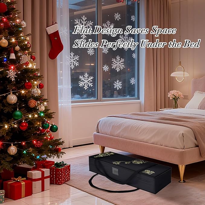 - 🎁【Flat Design Saves Space】Store more items in less space. You can easily put the wrapping paper storage bag in some narrow spaces, such as under the bed, on the dividers of wardrobes and closets. The flat design can make better use of space. Under bed storage containers.