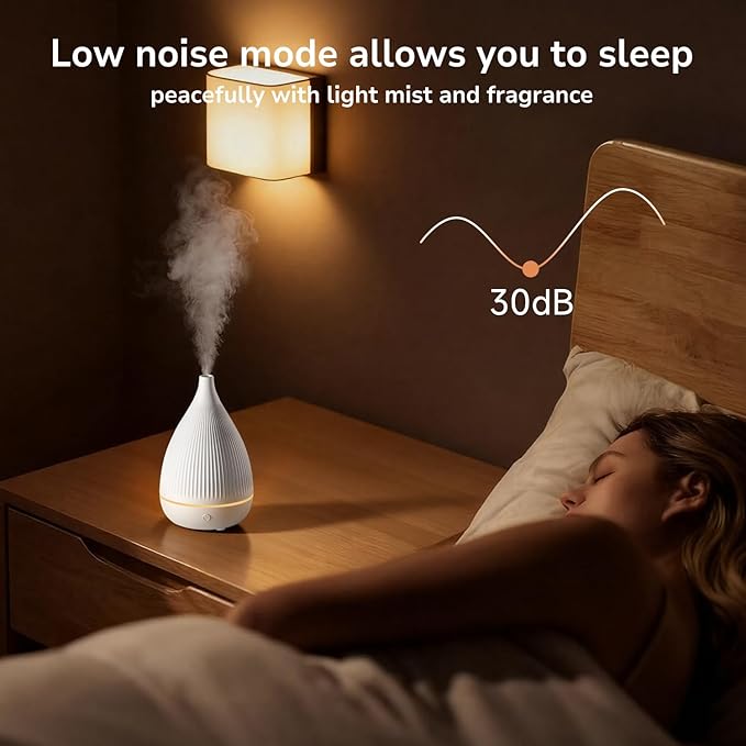 - Ultra-Quiet & Safe Operation Under 23dB: Designed with a whisper-quiet ultrasonic fan (quieter than breathing), this diffuser ensures uninterrupted relaxation. The automatic shut-off feature activates when water is low, preventing overheating and ensuring safety for kids and pets.