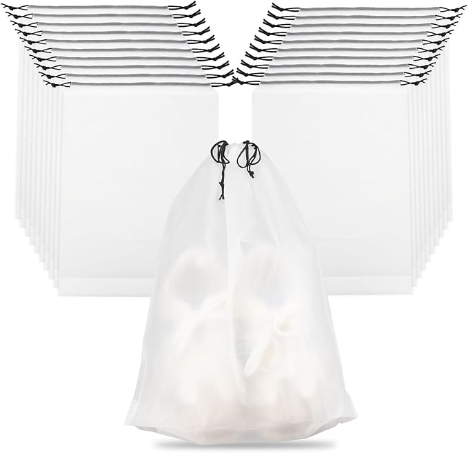 - Upgraded Material: Crafted from reinforced PE material, our shoe bags resist tearing, offer waterproof protection, and are reusable. Dual drawstrings enable swift opening and closing for convenient organization