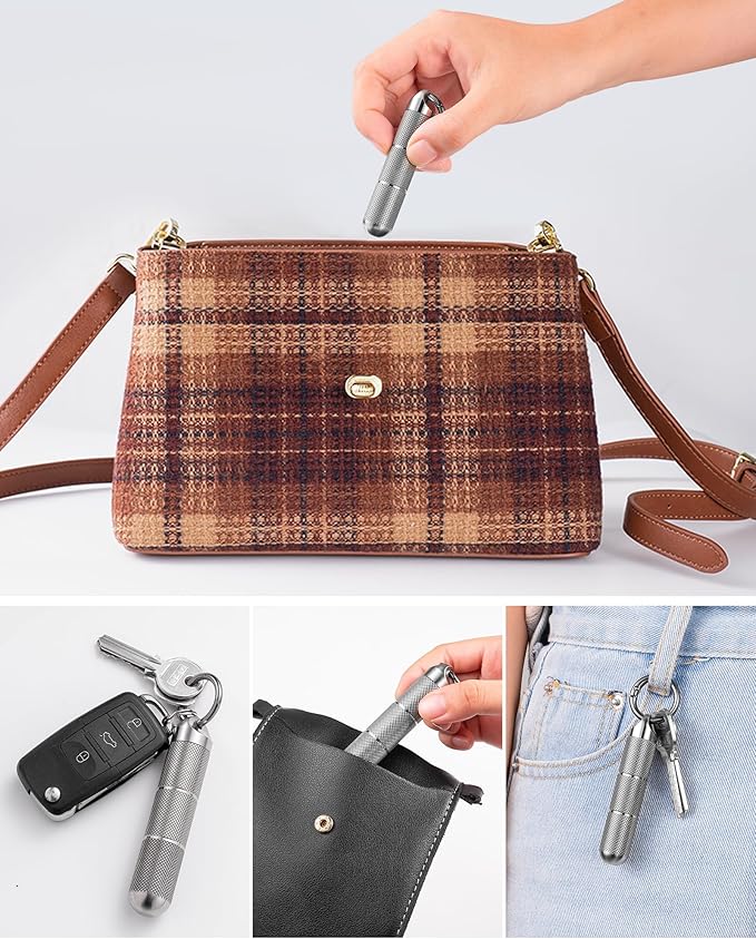 - Titanium Keychain Pill Holder: Made of high-quality titanium alloy, lightness, corrosion resistance, and durable. And the surface threads without hand slipping for ease of use.