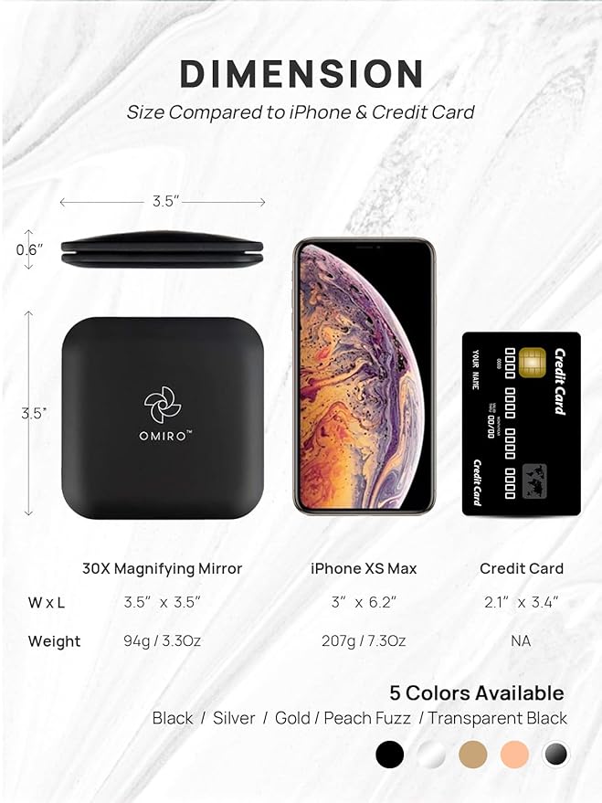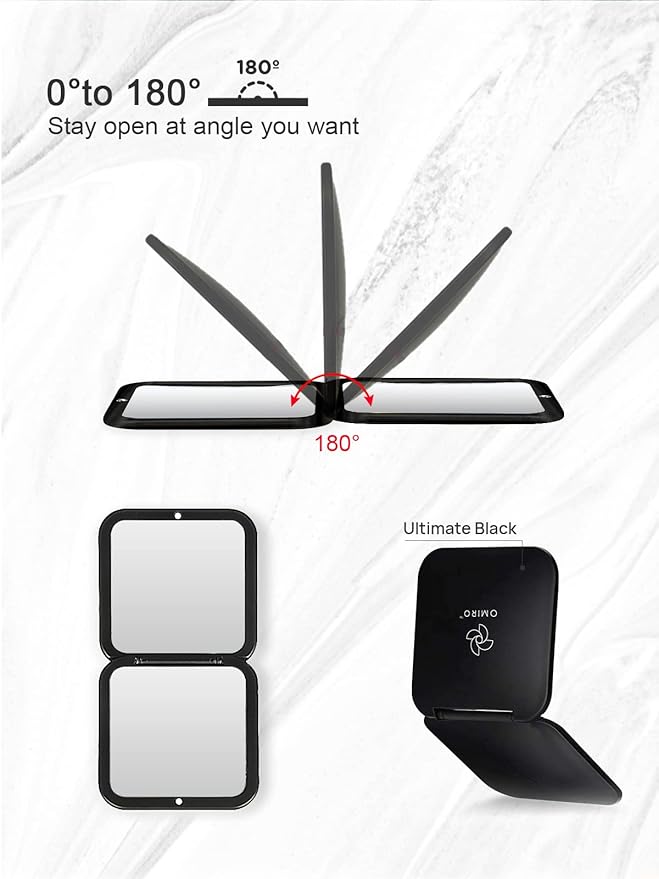 OMIRO Folding Compact Mirror, 1X/30X Magnification 3½” Pocket Size Square Hand Mirror for Travel Makeup (Black)