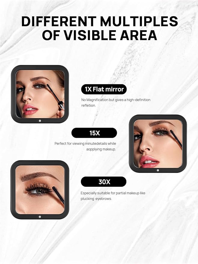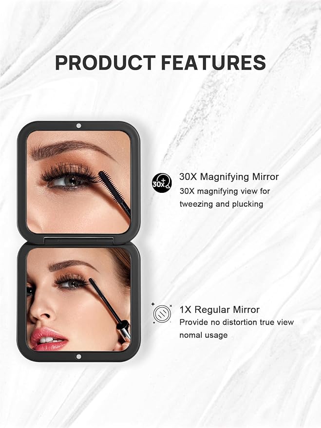 - 1X & 30X MAGNIFICATION: Two mirrors meet all your needs for cosmetic use - 1X HD regular mirror reflects your real face. In contrast, the premium undistorted 30X mirror works great for mascara, tweezing and plucking, flossing, etc