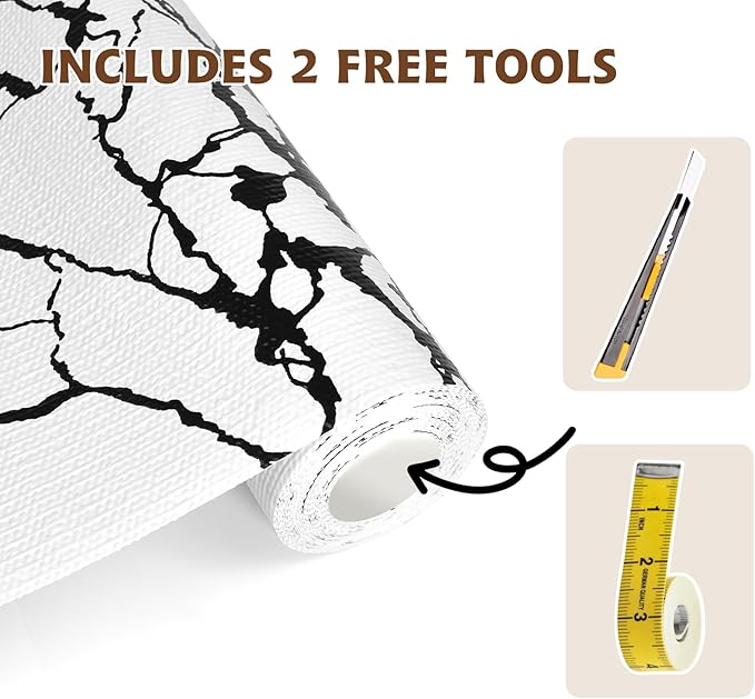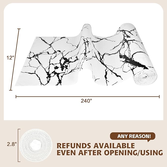 2-Layer Drawer and Shelf Liner for Kitchen Cabinet: 12 in X 20 Ft Non Slip Waterproof Shelf Paper Non Adhesive Refrigerator Liners White/Black Marble Easy Liners for Bathroom with Knife Tape Measure