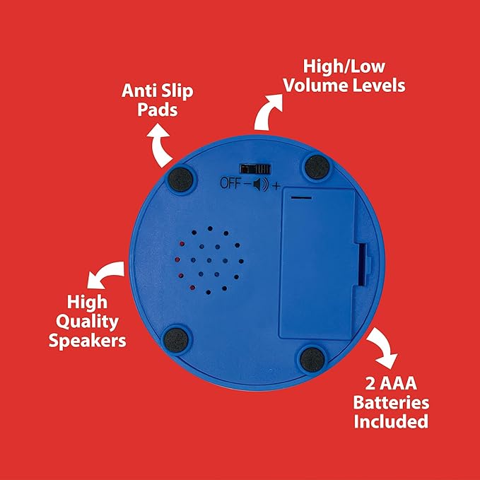 - BUTTON: HIGH/LOW VOLUME ADJUSTMENT: With 2 volume settings you can enjoy in loud or quiet environments! BATTERIES INCLUDED: (2) AAA Batteries Included