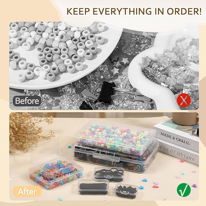 - Multiple Usages: Our plastic storage containers with lids are suitable for storing various small items, such as pens, beads, coins, pills, jewelries, nail arts, cards, game pieces and more
