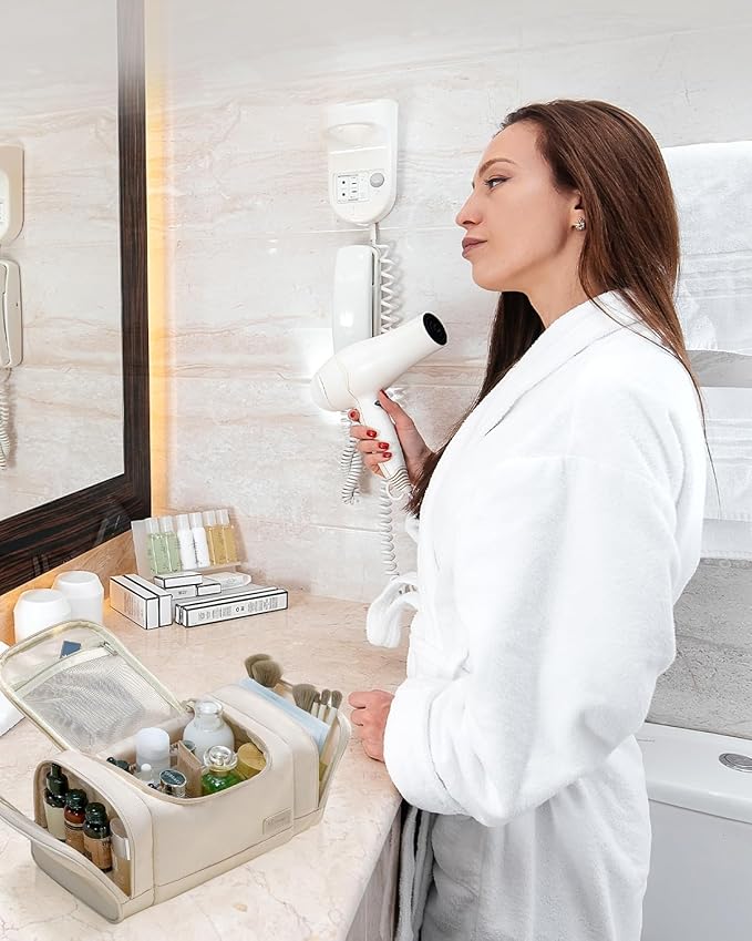 - Durable Details: The toiletry bag features a soft yet sturdy handle for secure carrying. The smooth two-way zipper of the main compartment and reinforced stitching ensures longevity and reliable performance.