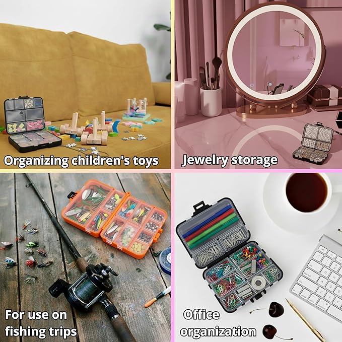 - ๐ฏ MULTI-PURPOSE FOR EVERY ROOM & HOBBY Use as a mini hardware organizer, craft bead box, sewing supply holder, electronic parts container, or EDC parts case. Compatible with hobby supplies like (Polymer Clay Beads Jewelry Making Kit, Clay Beads Bracelet Making Kit, or Sets Button Maker Supplies) and hardware assortments like (Faucet Washer Assortment Kit, Snap Ring Assortment, and Stainless Steel Fender Washers). Serves as fastener organizer, screw and bolt storage, washer and nut container, jewelry findings organizer, or small hardware parts bin. Ideal for professionals and hobbyists including carpenters, mechanics, tailors, plumbers, electricians, and electronic repair technicians.
