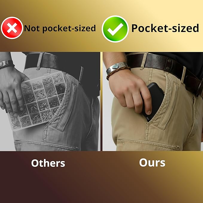 - ๐ฆ POCKET-SIZED ULTRA-PORTABILITY Compact dimensions (3.54" x 2.36" x 1.18") and lightweight design (1.13 oz) fit easily in pockets, backpacks, or tool belts. Perfect for tiny essentials like (Silicone Earring Backs, Buttons, Beads, Terminal Pins, Fuses, O-rings, or Sewing Accessories). Ideal for small kits such as (Sewing Kit, Soft Tape Measure, Soft Tape Measure Double Scale Body Sewing, and Sewing Kit Christmas Stocking Stuffers). Great for travel tool kits, DIY craft organizers, mobile screw assortments, jewelry making kits, sewing boxes, garage tool drawers, or portable parts containers.