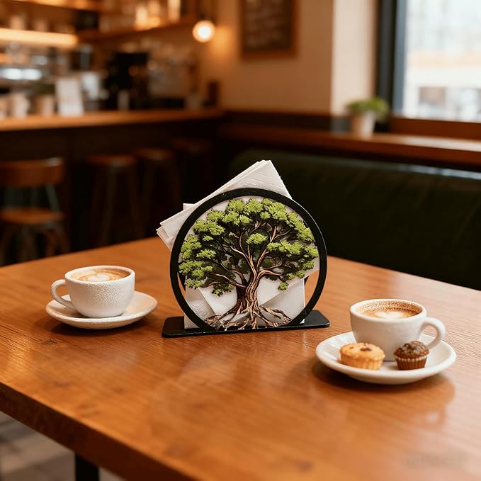Tree of Life Napkin Holder for Table-Free-Standing Paper Napkin Dispenser for Cafe, Bar, Restaurant Table Decor |Colorful Metal Napkin Stand |Rustic Home Decor Presents|Modern Kitchen&Dining Accessory